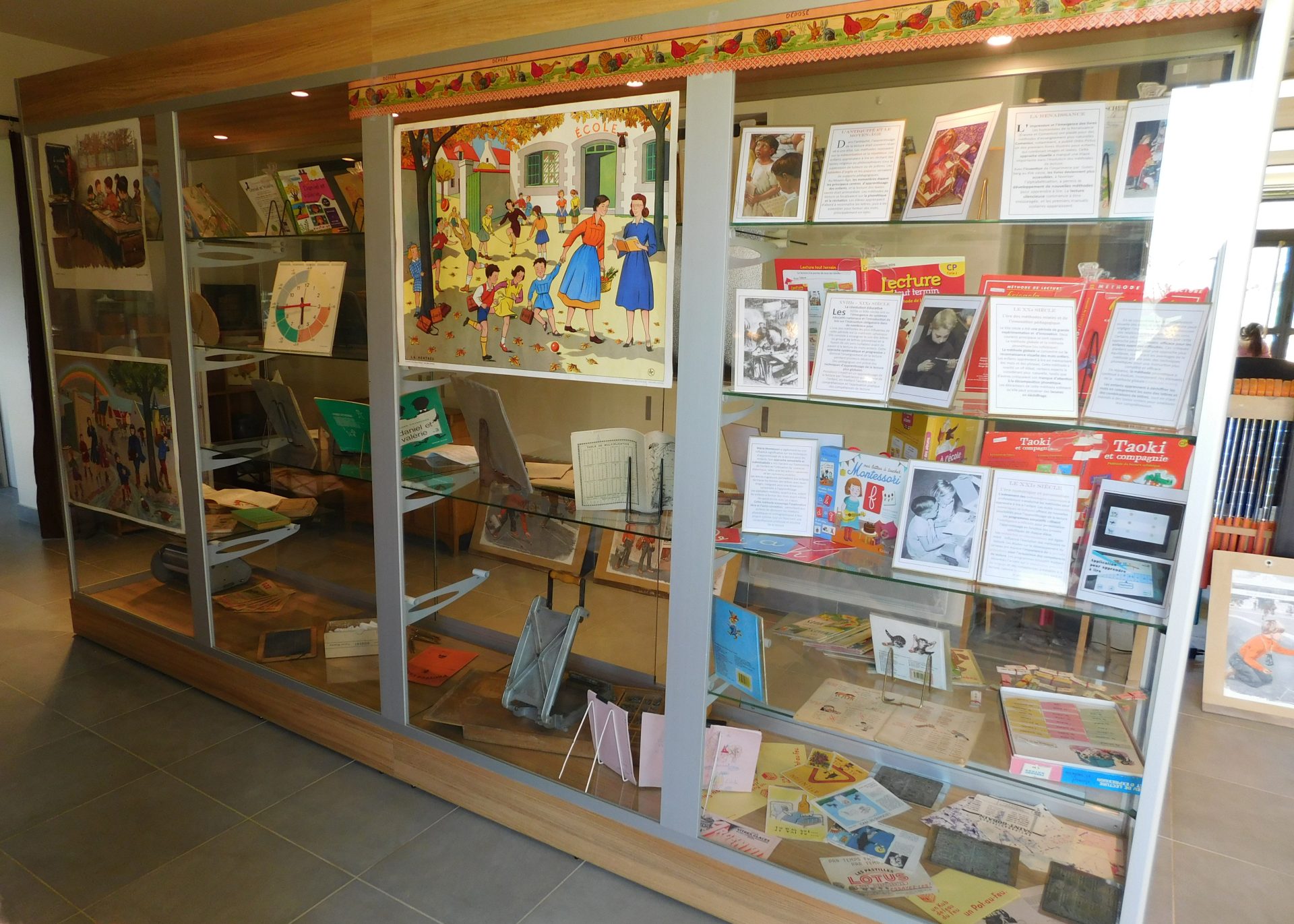 À travers une sélection de livres de lecture emblématiques, de méthodes pédagogiques et de supports scolaires, le visiteur redécouvre comment, depuis plus d’un siècle, l’école a transmis ce savoir essentiel.