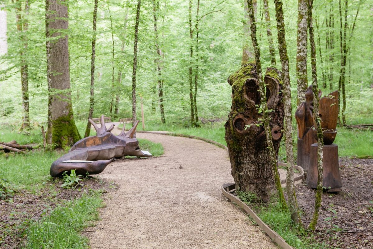 Mobilité : Parcours en boucle d'environ 800 m sur le Sentier du Palais du Roi Chêne, accessible aux personnes à mobilité réduite (PMR). Proximité immédiate du parking et des sanitaires accessibles de la Maison du Parc.
