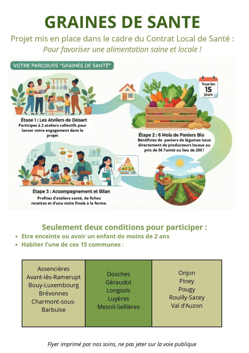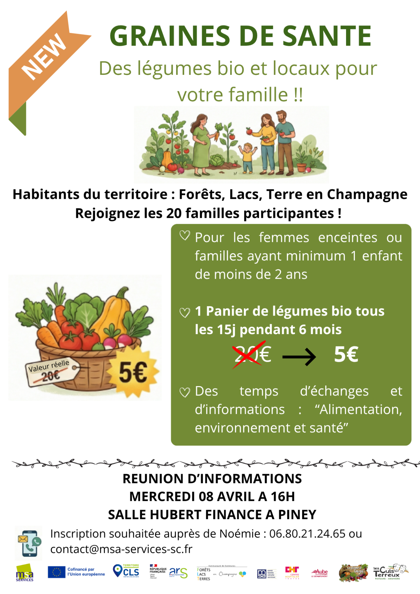 Dans le cadre du Contrat Local de Santé, la MSA Services Sud Champagne lance son projet « Graines de santé : un projet innovant pour les familles ». Son objectif : agir dès les premiers mois de vie de l’enfant — et même avant — en sensibilisant les familles aux enjeux de nutrition, de santé et d’environnement.