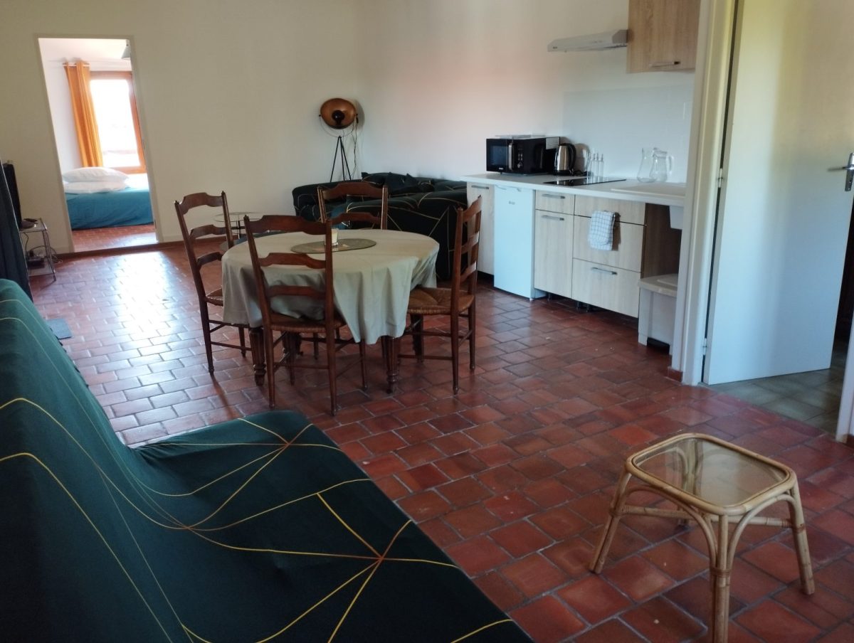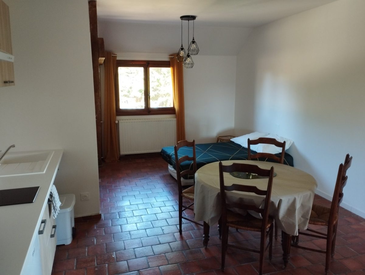 Un salon - salle à manger avec canapé d'angle, TV, table et clic-clac 130*190 (matelas Bultex)