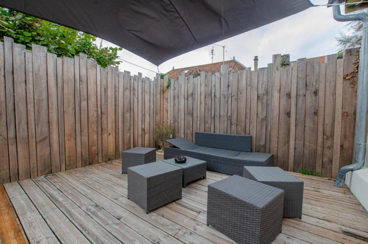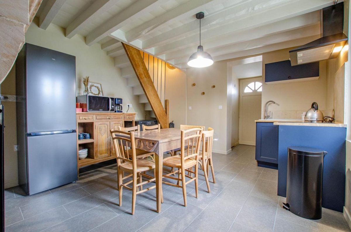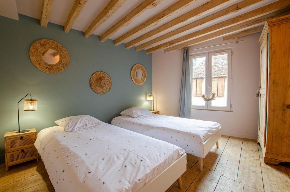 Au rez-de-chaussée, vous trouverez une pièce de vie avec coin cuisine et poêle, un salon confortable avec grand écran TV et canapé convertible (possibilité de 2 couchages supplémentaires (20€/nuit/personne), un wc indépendant et une salle d'eau (douche + vasque). A l'étage, vous trouverez une chambre double (lit 160x200) et une chambre twin (2 lits 90x200 pouvant être rapprochés). A l'extérieur, vous apprécierez la cour entièrement close et sans vis vis équipée d'un salon de jardin, salon détente, voile d'ombrage et barbecue. Le parking gratuit se fera dans la rue. Chauffage, électricité, linge de toilette, ménage de fin de séjour compris dans le prix du séjour. Lits faits à l'arrivée.