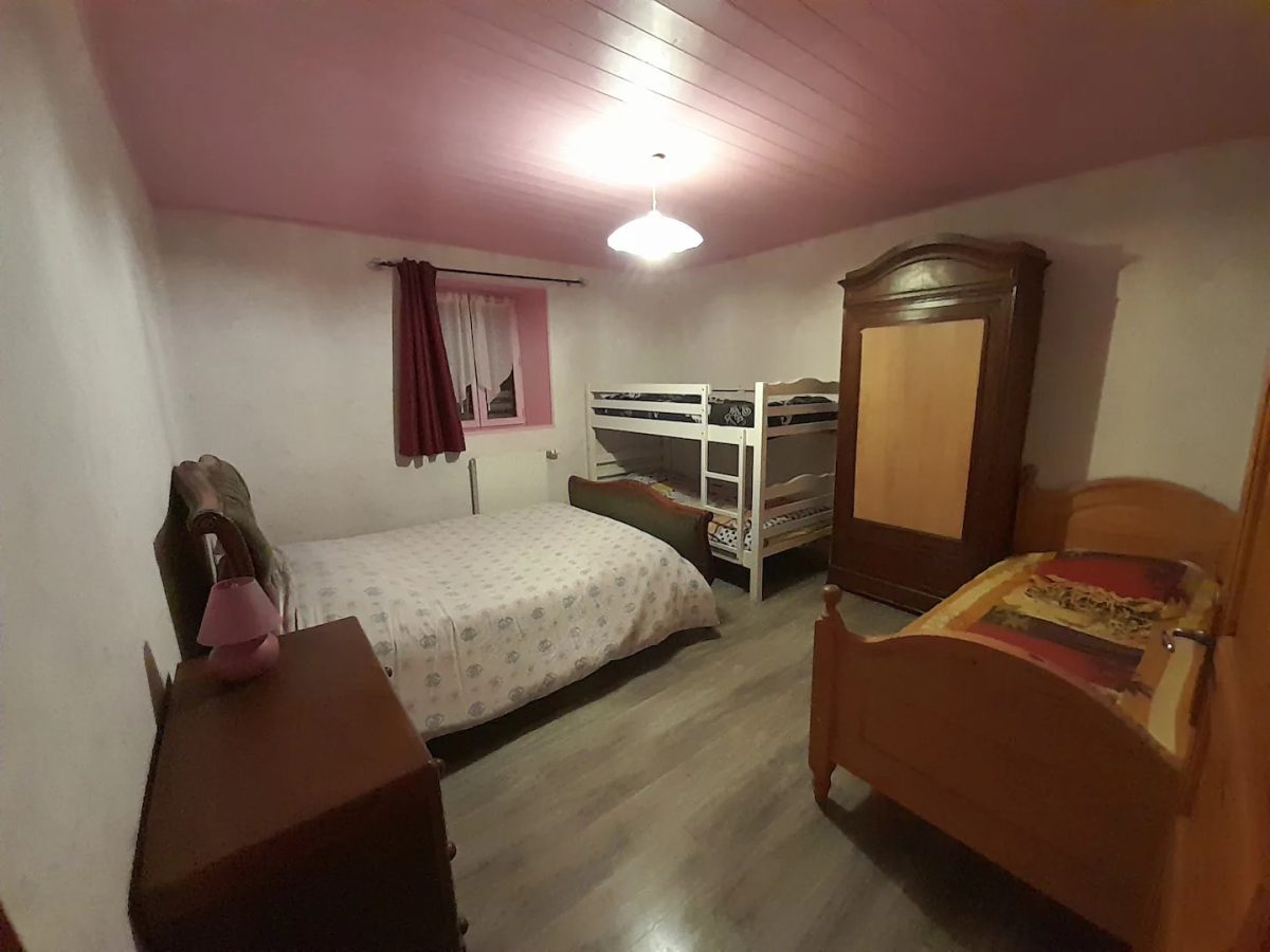 - une chambre avec un lit deux personnes et trois lits individuels