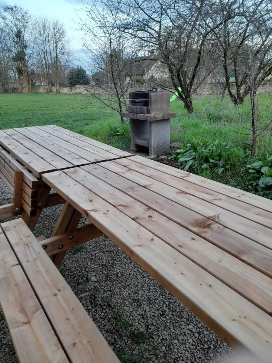 Vous disposez d'une partie du jardin et un parking privé pour garer quatre voitures. Une balançoire et une maisonnette pour que les enfants de 2 à 12 ans s'amusent.