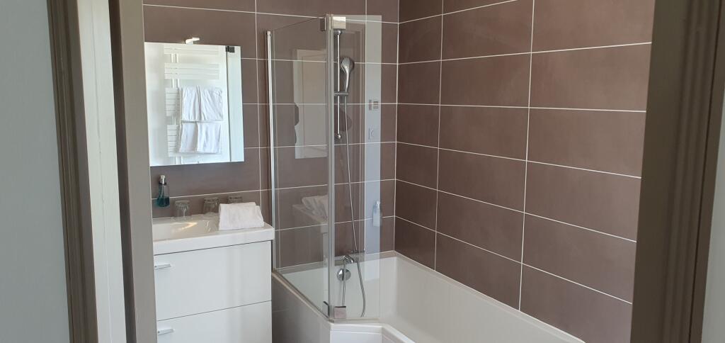 Le second, pour 4 personnes comprend une chambre avec 2 lits séparés, une chambre avec un grand lit et une salle de bain.
