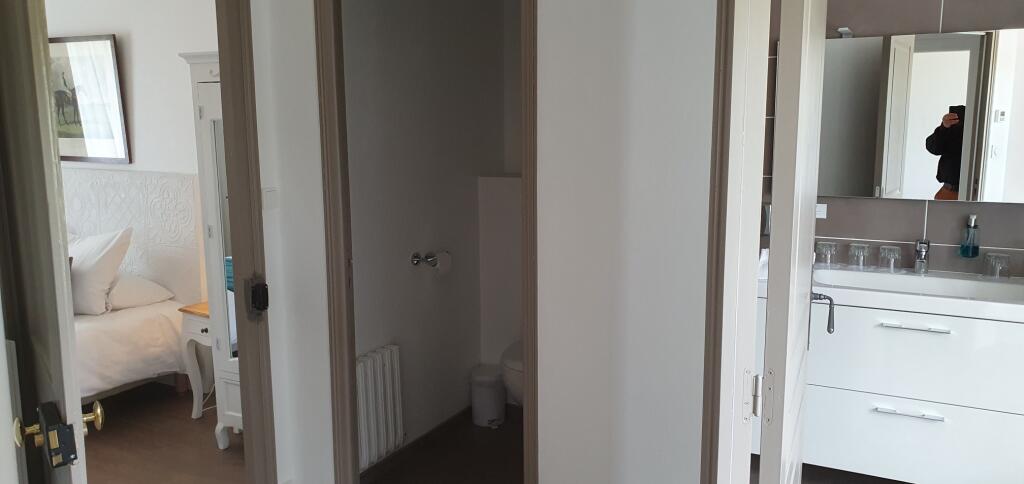 Un premier hébergement pour 6 personnes est composé de 2 chambres avec 2 lits séparés, une chambre avec un grand lit et une salle de bain