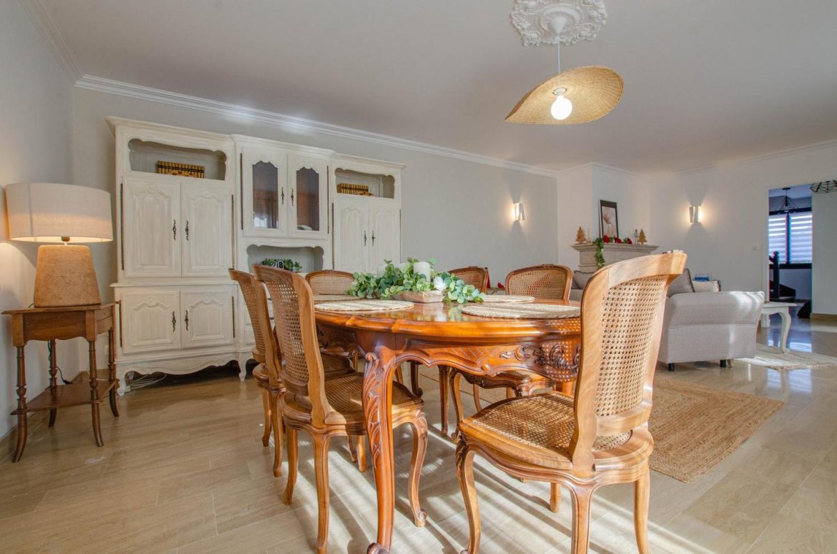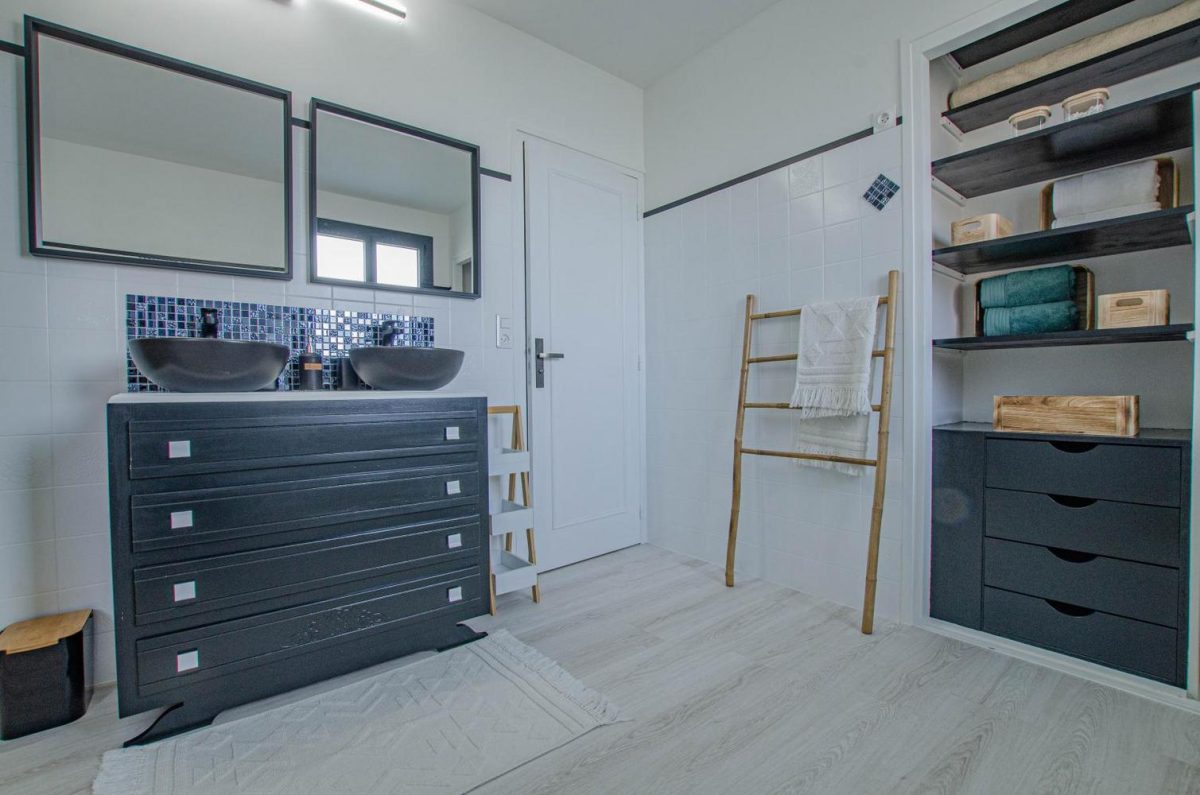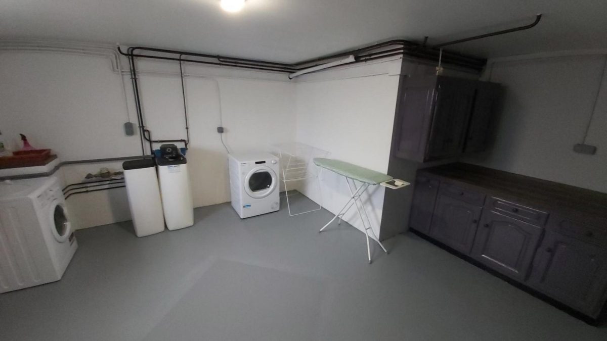 Au rez-de-chaussée : cuisine équipée avec coin repas, électroménager. Coté salon, vous trouverez une pièce de vie spacieuse avec télévision, cheminée décorative, coin repas et bibliothèque.