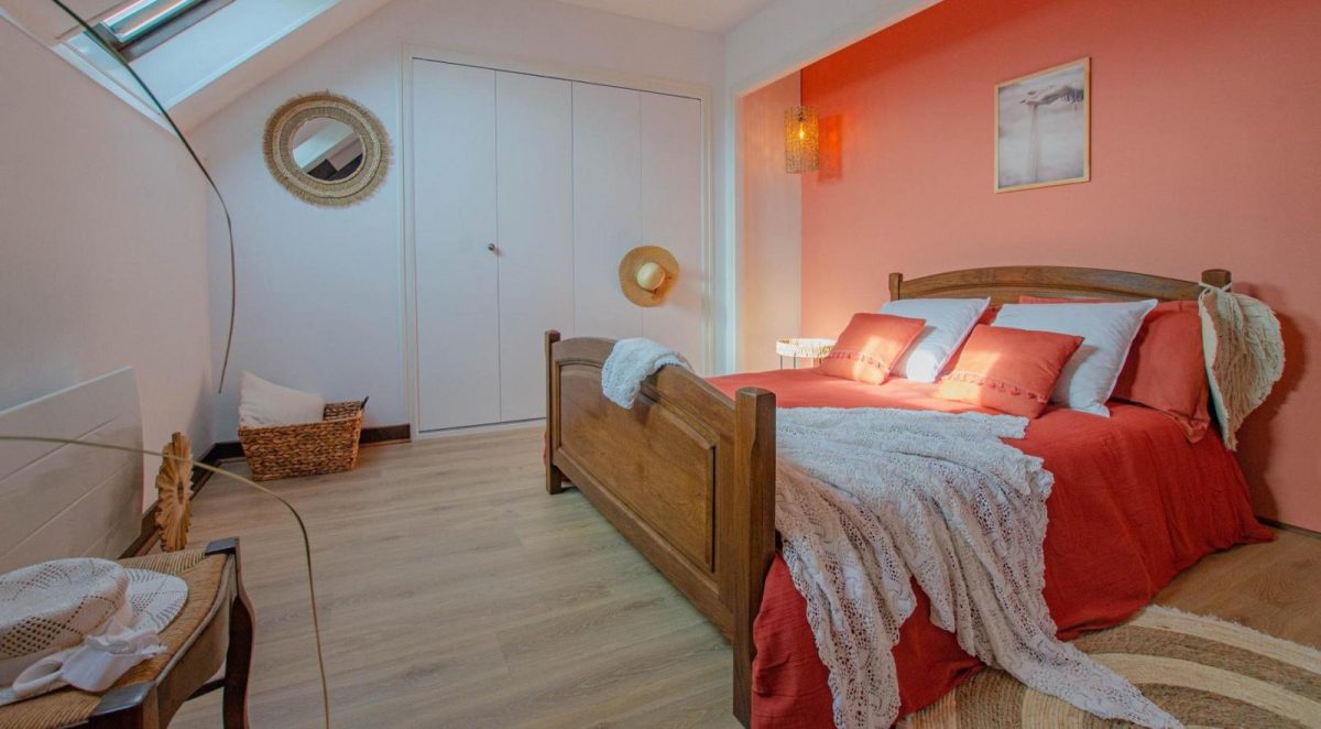 Vous disposerez d'une chambre double (lit 160x200) avec placard et commode, miroir et d'une salle de bain avec douche et baignoire, wc indépendant.
