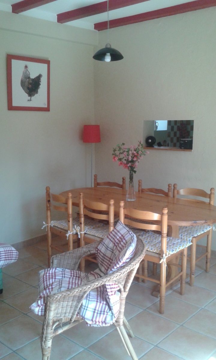 Capacité du gîte : 5 personnes, 2 chambres 4 lits : 1 chambre avec 3 lits de 1 personne + lit bébé et 1 chambre avec 1 lit de 2 personnes. Cuisine grand confort. Salle d'eau. Séjour avec coin salon, TV, poêle à bois (le bois peut-être fourni). Chauffage électrique. Connexion internet. Location linge. Ménage effectué en fin de séjour avec supplément. Matériel bébé disponible. Terrasse avec salon de jardin et plancha. Parking et jardin privatif.