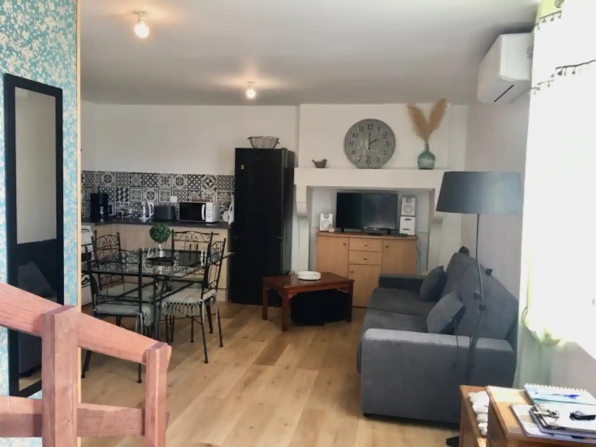 Maison de 70 m² avec une cuisine, salon séjour de 30 m2 et un WC.
