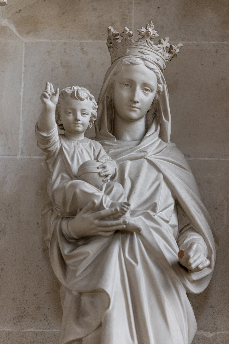 Les vitraux dans le chœur et les huit statues datent du XIVème au XVIIIème siècles.