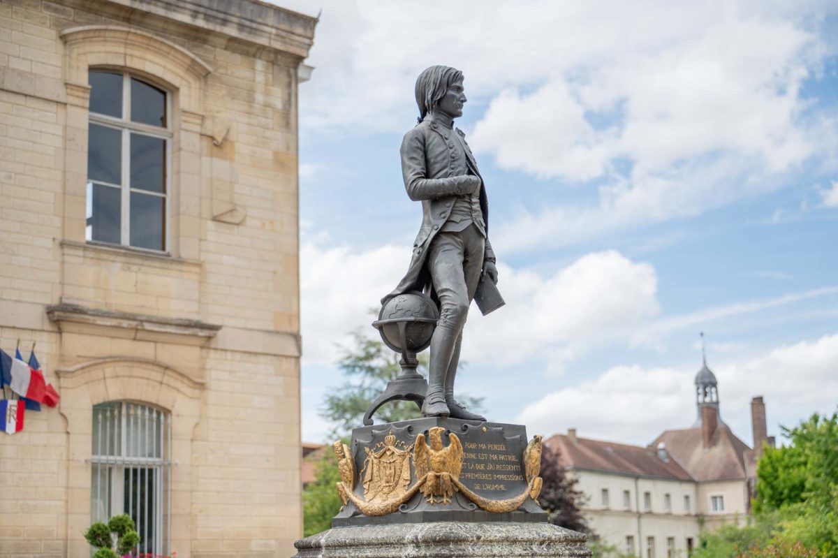 La statue de Louis Rochet représente Bonaparte à 15 ans, sortant de l'école militaire.