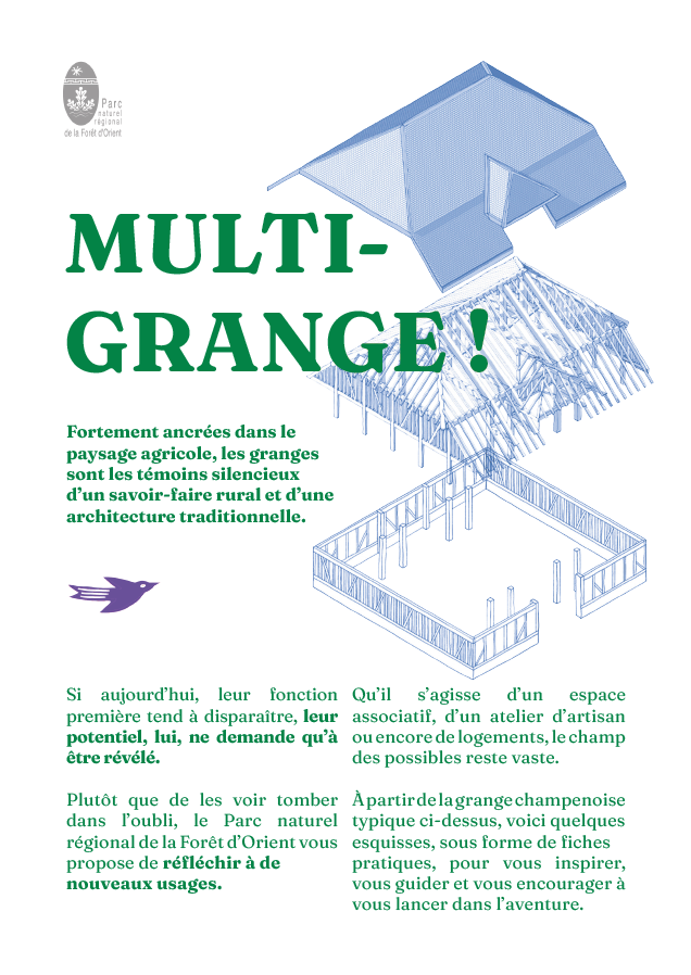 Si aujourd’hui, leur fonction première tend à disparaître, leur potentiel, lui, ne demande qu’à être révélé. Plutôt que de les voir tomber dans l’oubli, le Parc naturel régional de la Forêt d’Orient vous propose de réfléchir à de nouveaux usages. Qu’il s’agisse d’un espace associatif, d’un atelier d’artisan ou encore de logements, le champ des possibles reste vaste. À partir de la grange champenoise, voici quelques esquisses, sous forme de fiches pratiques, pour vous inspirer, vous guider et vous encourager à vous lancer dans l’aventure.