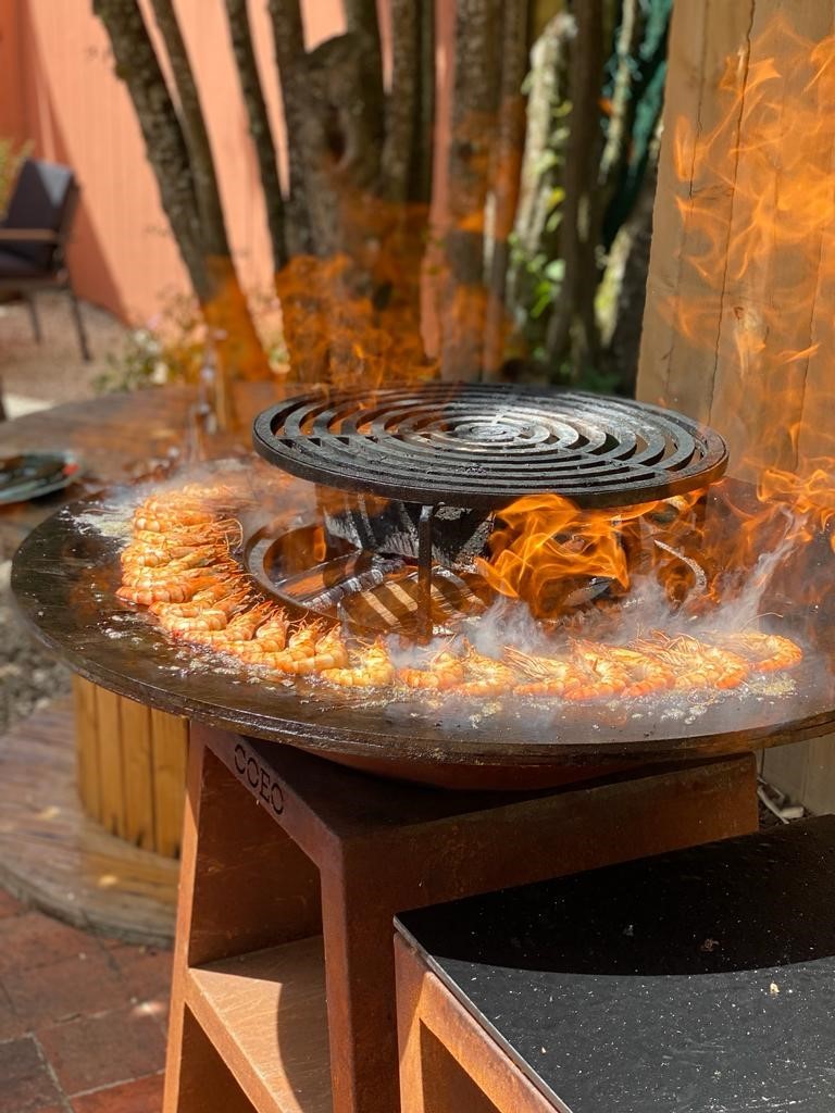 L’été, c’est autour des brasero et sur notre belle terrasse ombragée que nous vous régalerons.